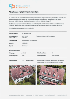 electrosuisse überprüft werden. Das Blitzschutzsystem muss jederzeit betriebsbereit sein (Ziffer 4 bzw. 5 der VKF Brandschutzrichtlinie