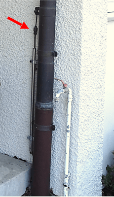 Beispiel «natürlicher Blitzableiter» über ein Fallrohr Dachentwässerung an der Fassade.